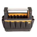 Optimal organisering med mange opbevaringsmuligheder til stort og småt værktøj. 1200 denier (stærkt, holdbart polyesterstof). Ekstra holdbar og stærk takket være dobbelte sømme og metalnitter. Robust, vandtæt bund. Polstret skulderrem til nem bæring af
