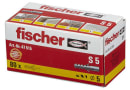 fischer S dybel i nylon for montage i beton, mursten letbeton m.m. Ingen ekspansion i dybelhalsen sikrer at fliser og pudslag ikke beskadiges. For 3-4 mm spånskrue.