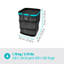 Den forstærkede bund gør havesækken særligt robust og sikrer en lang levetid. Affaldssækken har 3 forskellige højdeniveauer – helt udfoldet, medium eller helt flad.