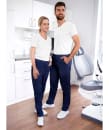 Her får du et par klassiske arbejdsbukser i marineblå, der er lavet til dig, der har brug for både komfort og funktion i løbet af dagen. Bukserne er udviklet til professionelle miljøer som pleje, medicin og rengøring, hvor det er vigtigt, at tøjet både sidder godt og kan holde til lidt af hvert.