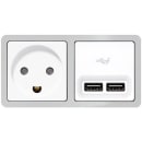 USB strømforsyning til bolig installationer eller lignende. USB strømforsyningen anvendes til at oplade og strømforsyne apparater, som strømforsynes via USB (type A),f.eks. mobil/smartphones, tablets og andet IT udstyr. Maks. ladestrøm er 2,1A hvis kun det ene udtag benyttes, eller 2x1,05A hvis begge udtag benyttes. Bemærk at USB strømforsyningen kan ikke benyttes til datakommunikation.