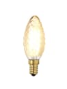 Kombinationen af et snoet og ravfarvet glas og LED filamentet tilføjer varme til lyset og gør pæren oplagt som dekorationspære.