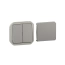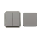 PLEXO55 multiafbryder. Med blot et drej på fjederen, kan den ændres fra trykkontakt til korrespondanceafbryder. Der kan laves 5 forskellige løsninger på denne afbryder. Til montering i underlag eller planforsænket med ramme. Leveres med både 2x1 modul tangent og 1x2 modul tangent. IP55. 2 modul. Grå.