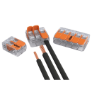 Fjedersamlemuffe fra Wago til samling af alle salgs ledere – entrådede, flertrådede samt fleksible ledere – uden brug af værktøj. Samlemuffen giver en hurtigere, nemmere og sikrere installation af mange forskellige ledertyper, og dens kompakte størrelse gør det lettere at etablere forbindelser på sværttilgængelige installationssteder.