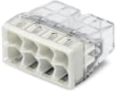 Fjedersamlemuffe fra Wago til samling af massive ledere uden brug af værktøj. Samlemuffens kompakte størrelse gør det lettere at etablere forbindelser på sværttilgængelige installationssteder.